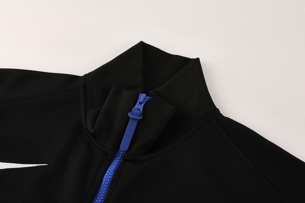 Affiche ton style et ta passion pour le Chelsea FC avec ce survêtement noir & bleu 2025-2026 conçu pour les fans et les sportifs. Alliant confort, modernité et performance, il est idéal aussi bien pour l’entraînement que pour une tenue décontractée. Avec son design élégant, son logo brodé et ses détails bleus contrastés, il te permet de représenter les Blues avec fierté.